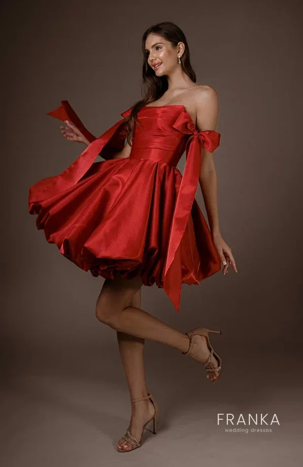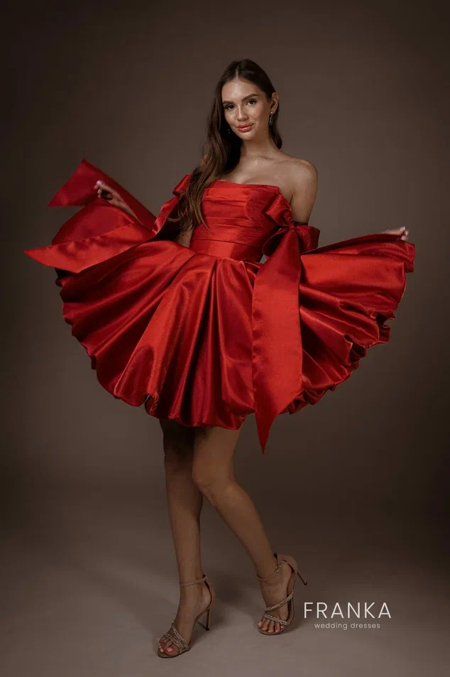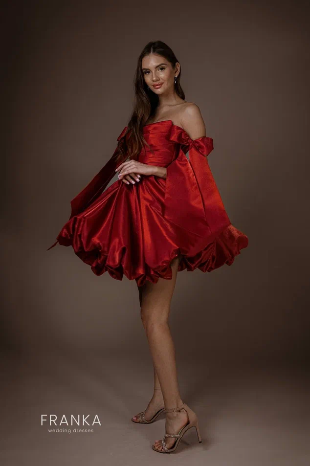 Яркий красный цвет, символизирующий страсть, делает его идеальным выбором для праздника, вечеринки или даже романтического свидания. Модель подчеркивает фигуру, создавая нежный и притягательный силуэт.