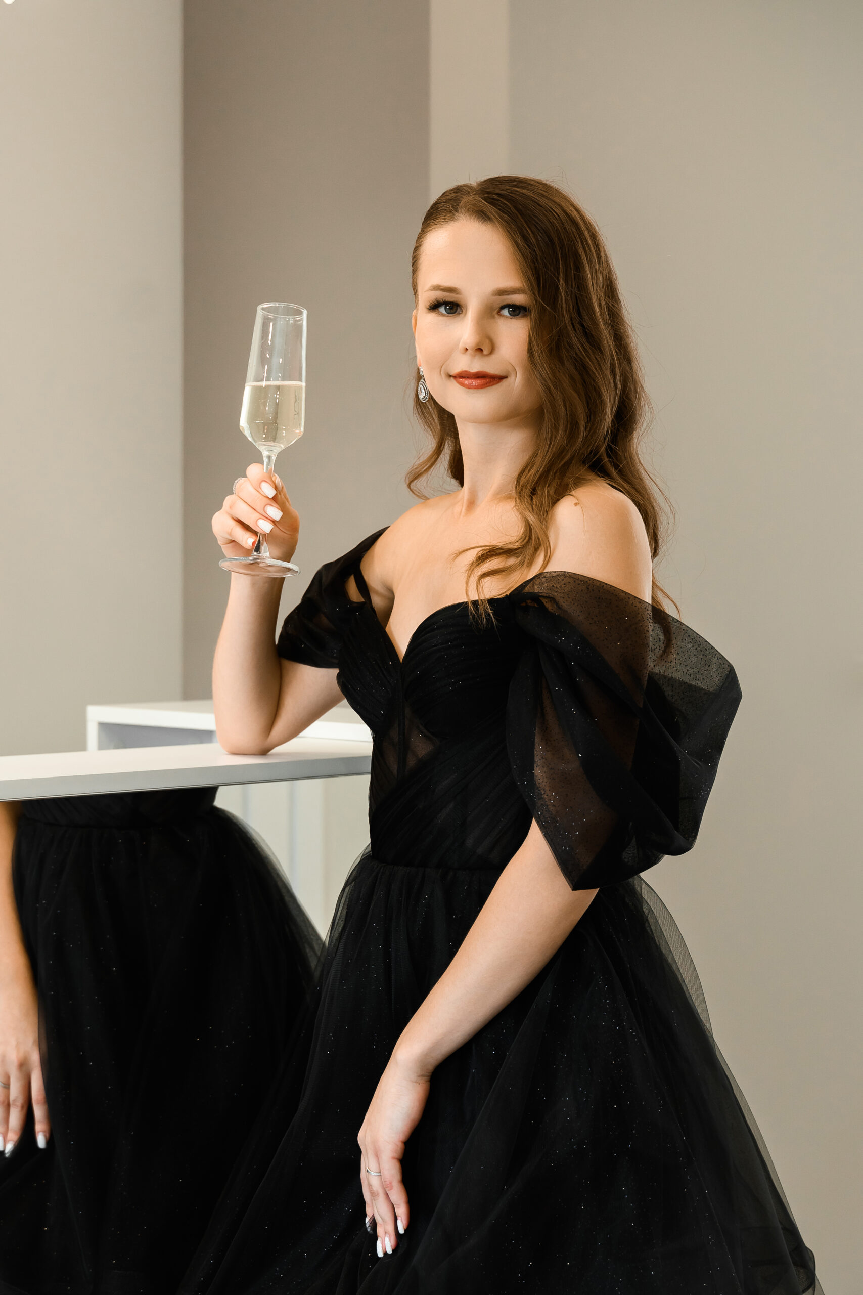 Идеальное вечернее платье на корпоратив должно быть ярким, стильным и запоминающимся одновременно. Платье женское вечернее черное Полли как нельзя лучше соответствует этим критериям. Черное вечернее платье – это манифест легкости, игривости и уверенности в себе. Его кокетливая мини-длина обещает свободу движений и море комплиментов.