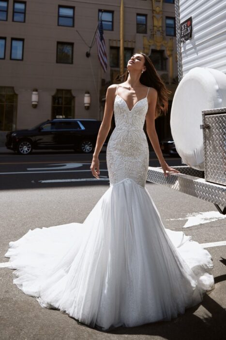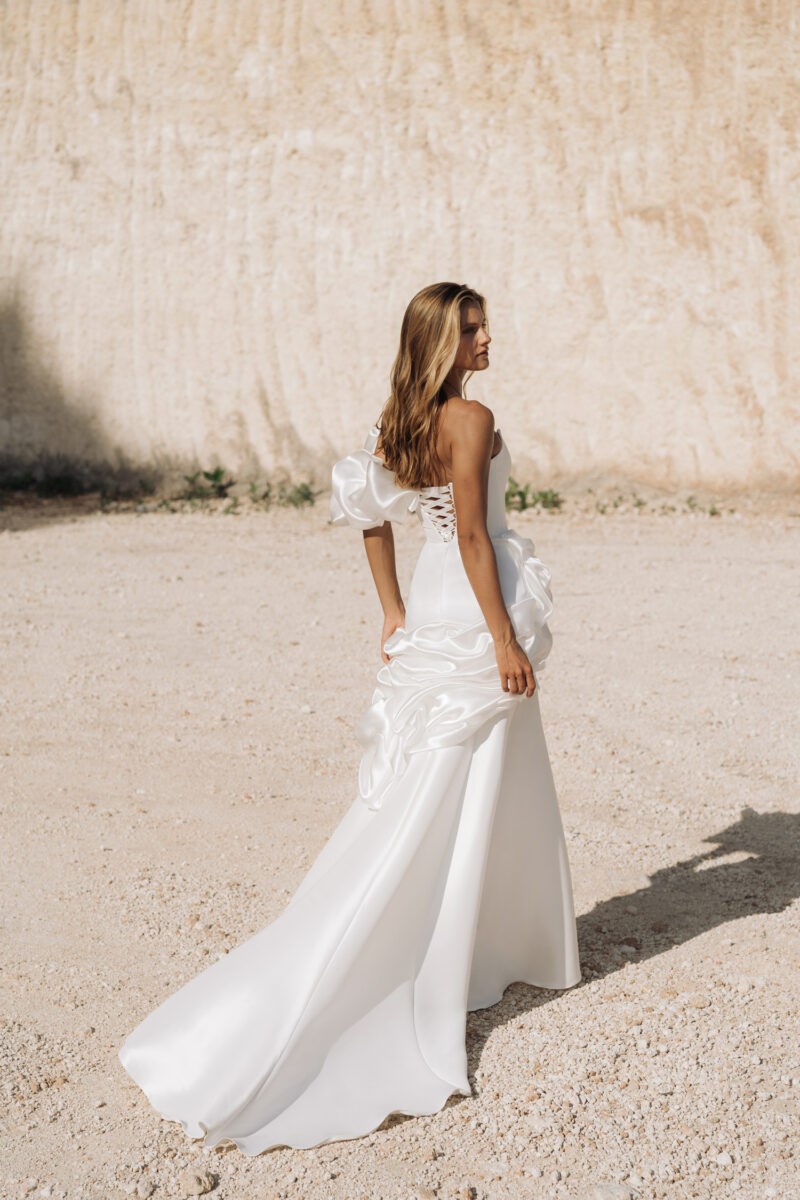 Другой вариант – свадебное платье-трансформер с отстегивающейся юбкой по линии бедра. Утром вы в роскошном платье-русалка со шлейфом, а вечером в облегающем наряде чуть выше колена. Удобно и невероятно эффектно!