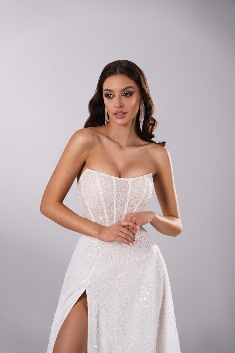 Платье-трансформер из короткого в длинное – это самый популярный вариант в нашем каталоге свадебных платьев. Основа такой модели короткая, а пышная юбка крепится сверху, создавая эффект бального наряда. После церемонии юбка отстегивается, и вы остаетесь в кокетливом мини.